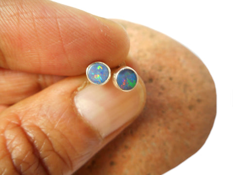 Australian Opal Sterling Silver 925 Gemstone Stud Earrings - 5 mm