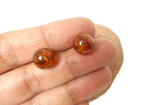 Cognac AMBER Sterling Silver Gemstone Round Stud Earrings 925 - 8 mm