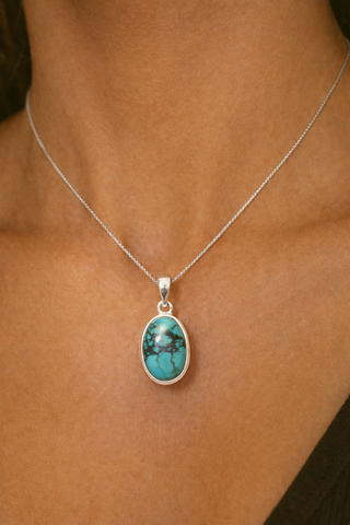 Tibetan TURQUOISE Sterling Silver 925 Gemstone Pendant